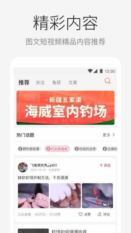 2、进入首页,可以选择话题查看推荐的钓友动态