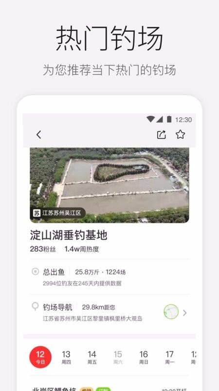 2、为你推荐当下热门的钓场,还提供导航让你快速找到钓场的位置;