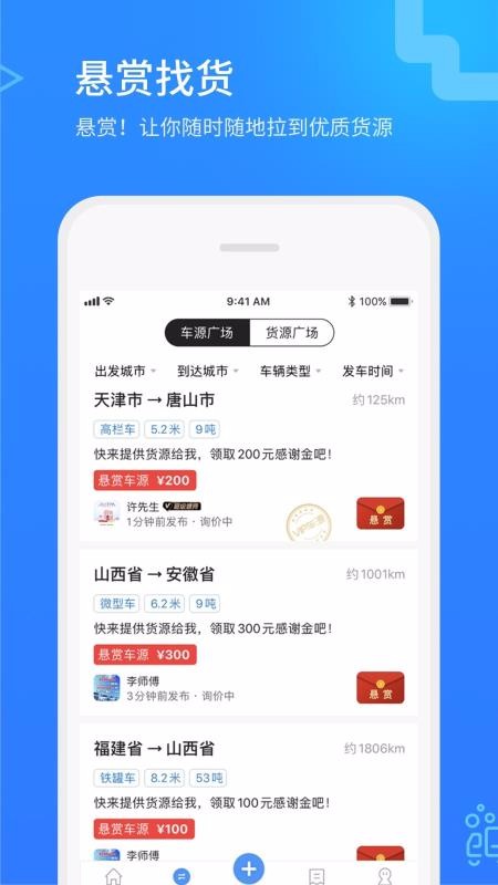 3、货源广场:支持寻找所有的货源,能够有效快速的寻找到更多的货源,获得收益;