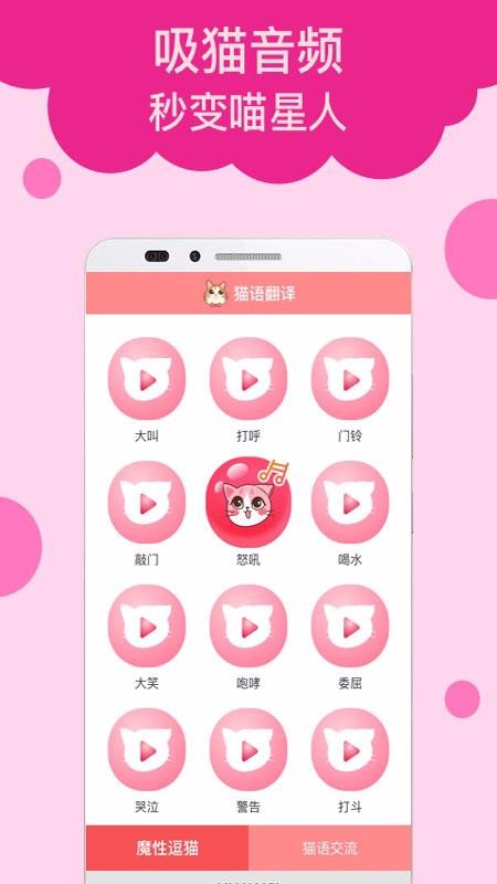 猫语翻译app是一款趣味十足的逗猫神器,专门为喜欢猫咪的用户量身打造的,它可以将人声转化为猫语,拉近猫和人之间的距离,从而让你的宠物猫咪更加亲近你,养过猫咪的用户都知道猫咪不愿意亲近人,为了获得猫咪的关注,这款猫语翻译app是你必不可少的神器,其次,有了它的帮助下,无论是脾气最火爆、最性格乖戾的猫咪,都能被它乖乖驯服,感兴趣的用户赶快下载你的逗猫神器吧。