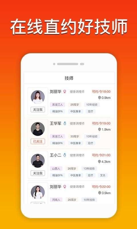 4、用户可以在平台里进行关注,更好的查看你关注的技师,及时的进行服务;