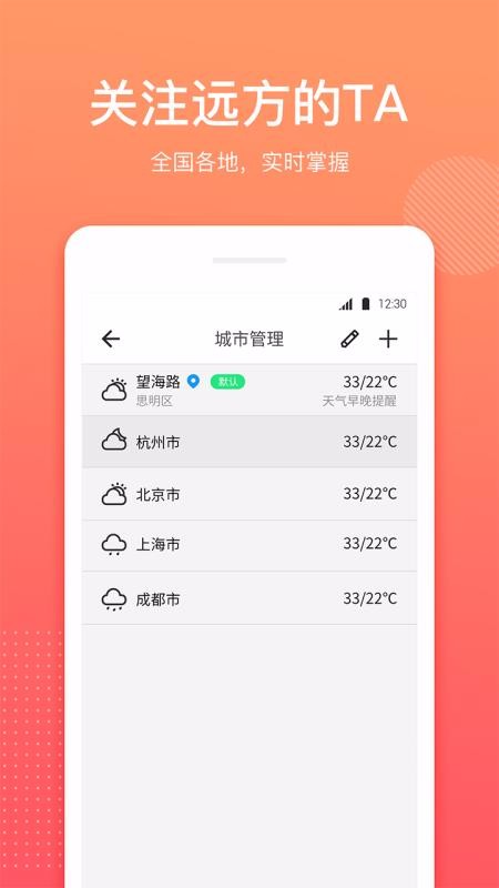 天气是一款天气预报的软件,此应用能够实时监测阴晴雨雪、准确定位天气,用户可以在线上快速查询到当天的天气情况;在这里提供有空气污染指数预报,实时将空气中的污染情况进行预报,及时生产报告在线进行了解;还提供有提醒功能,系统会根据天气的降水情况,实时将信息进行反馈,及时对用户进行提醒,让用户出行做好防预措施;而且可以在平台上进行签到,实时记录用户查看天气的时间,方便用户查看;还能通过搜索,快速的找到对应城市的天气情况,掌握远方用户的天气,赶快下载试试吧!