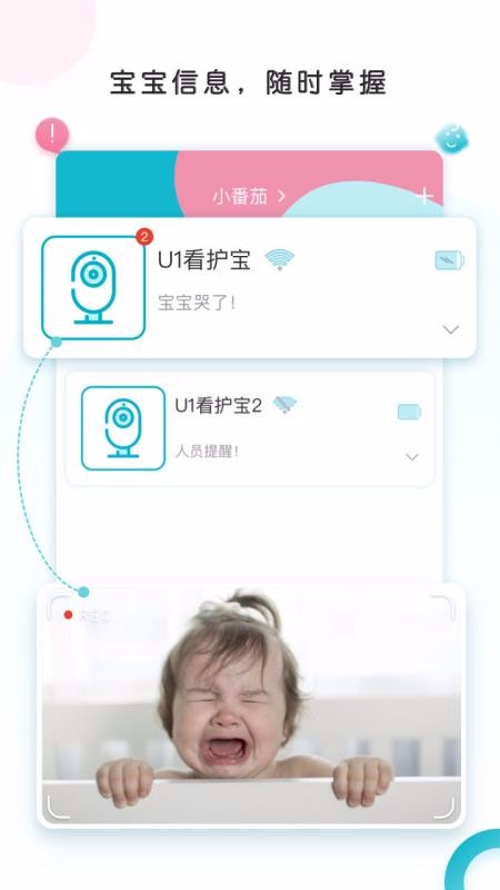 1、支持同时添加多个监控设备,全方位的监控宝宝不同的举动并提示不同信息;