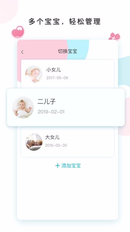5、选择打开进入切换宝宝的页面,快速点击切换或添加新宝宝