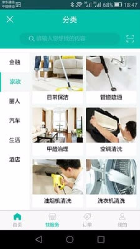 5、家政服务,支持在线预订家政服务,服务项目有日常保洁、管道疏通、甲醛治理、空调清洗等;