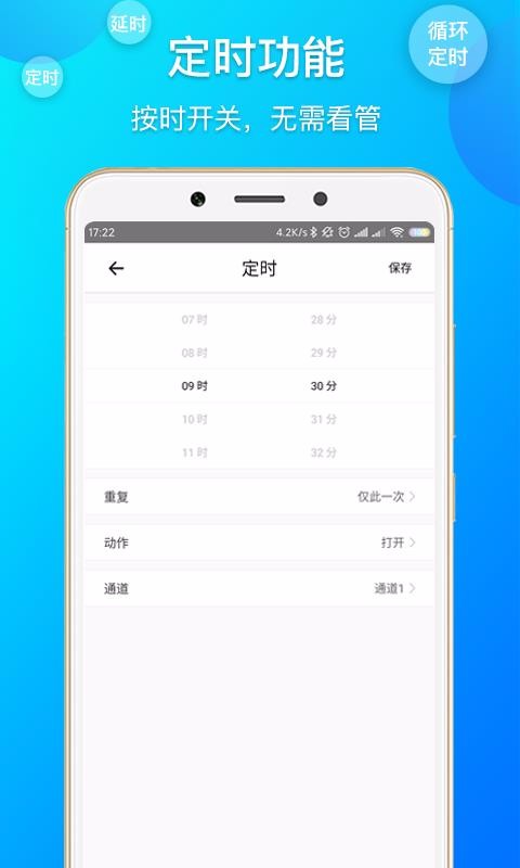 2、定时设置:支持设定时间,在相对的时间内进行自动操作;