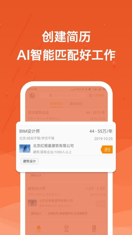 1、用户平台里快速的投递的自己的简历,让用户能够更好的找工作;