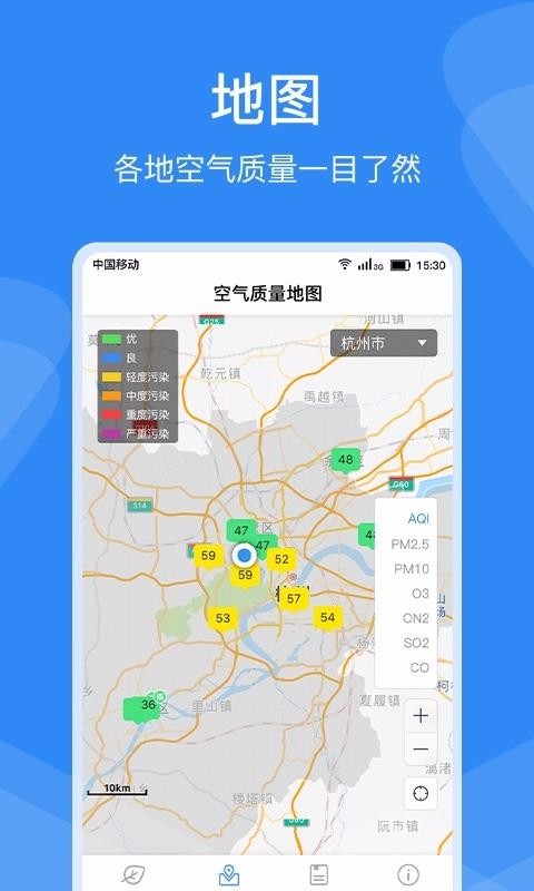 4、拥有全国空气质量地图,为你提供每一座城市的空气质量情况;