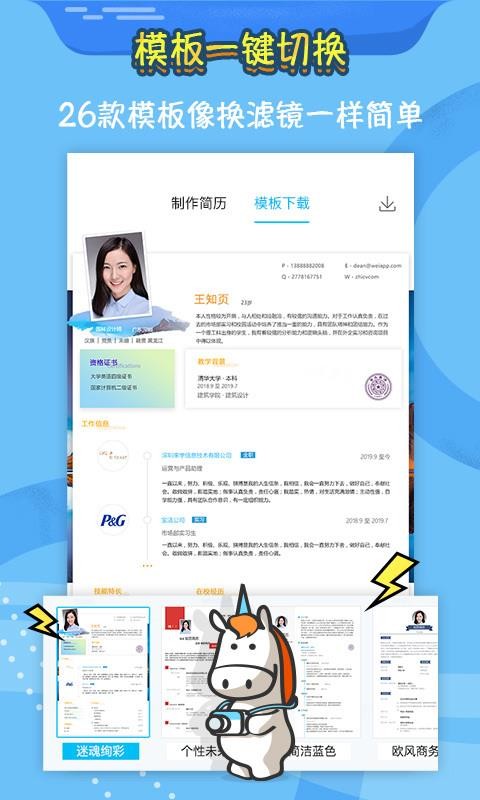 6、用户可以一键快速切换模板,不用重新填写内容,方便快速;
