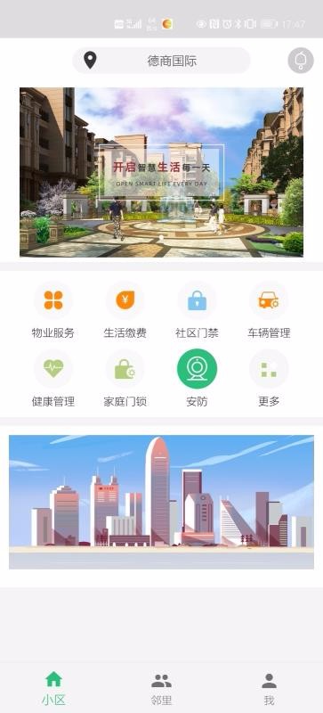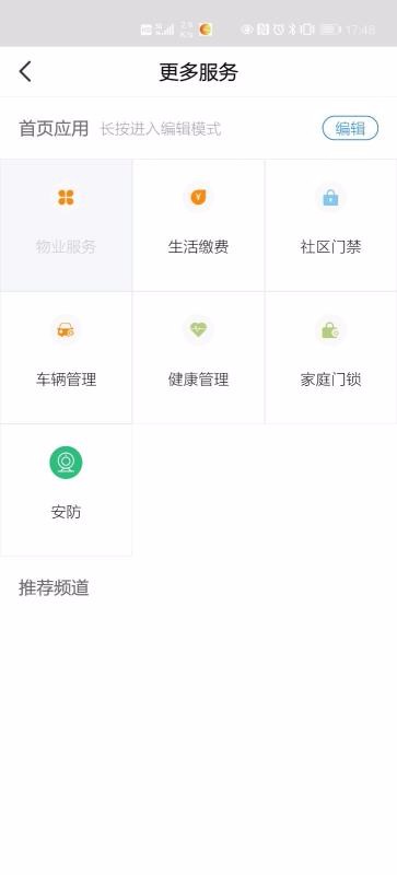 2、选择小区,查看平台推荐的众多服务,查看健康管理