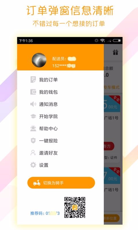 5、配送人员在顺路的情况下接单轻松赚外快,兼职模式,工作地域和时间都非常自由;