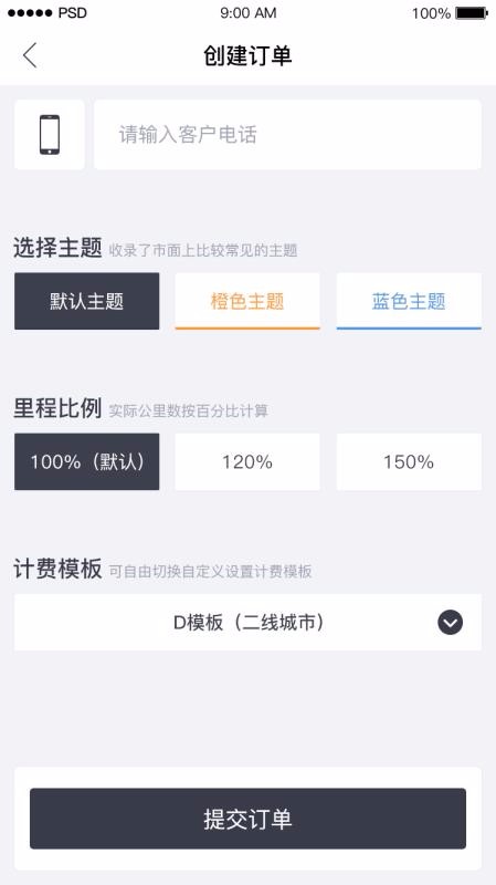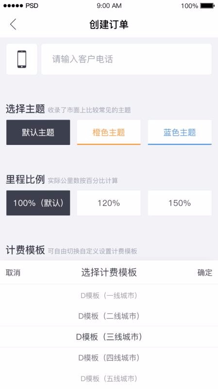 4、选择订单的背景主题与里程比例,展开计费模板查看并选择模板