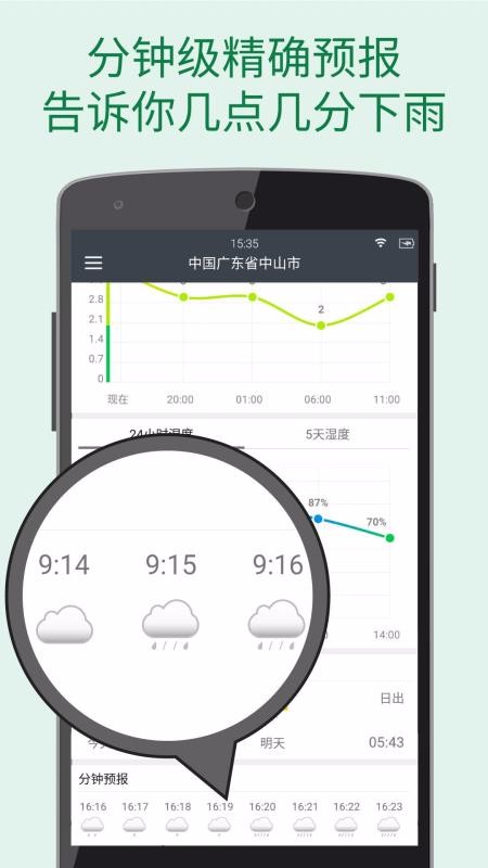 4、在24小时预报页面,可以查看分钟级的天气变化情况