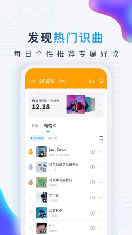 1、具有听歌识曲的功能,只要听到任何喜欢的音乐片段使用软件的听歌识曲就能找到完整的歌曲信息;