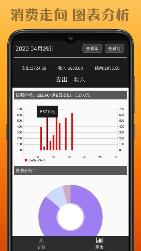 3、通过图表分析,你可以更好的看到账单明细情况,了解消费走走向;