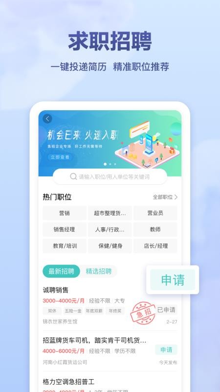 1、通过求职招聘,给更多的用户提供便利的服务,更好的进行使用;