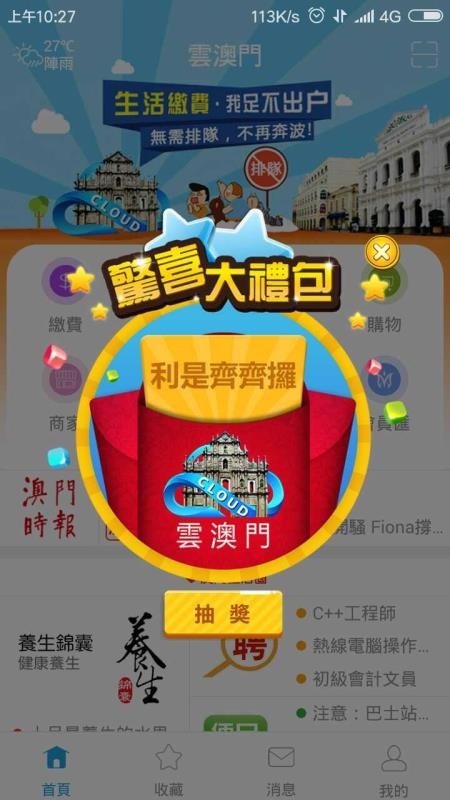 雲澳門app是專為澳門同胞打造的一款生活服務軟件,提供澳門當地多種便捷服務,可幫你快速尋找到當地值得信賴的商家信息,讓你可以到達商家享受到更多優惠服務,同時也能夠為商家尋找到消費者,讓你擁有更多客戶,提升店鋪的流量,隨時隨地在線享受互聯網推廣服務;此外,軟件還為用戶提供生活繳費、手機支付、休閑娛樂、網絡購物等多種實用的服務功能,是一個綜合性的生活服務平台,給你的生活帶來很多方便之處;在這裏,用戶還可以隨時查看到本地的新鮮資訊內容,感興趣的朋友趕快來下載雲澳門手機版體驗吧!
