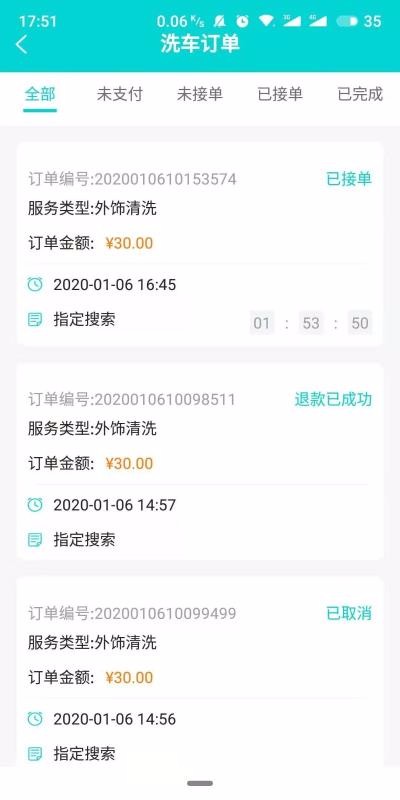 1、应用中拥有大量的车主用户在线进行洗车服务;