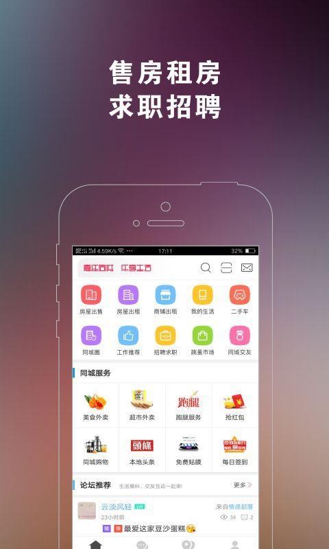 5、求职招聘、同城跑腿、售房租房、二手市场等服务应有尽有;