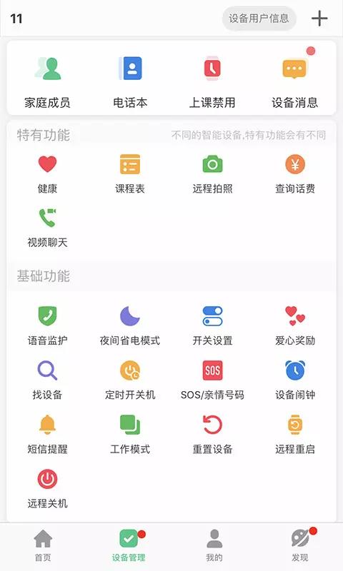 3、点击设备管理,有特有功能和基础功能,可以自行选择功能来操作
