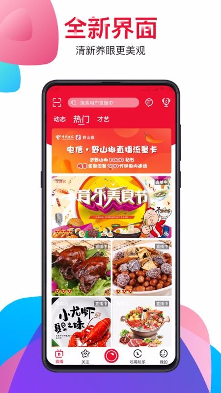 3、有不同的直播分类,展示热门的直播与才艺直播专栏,能观看不同内容;