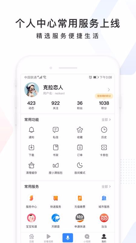 首页底部快速进入视频频道,海量明星娱乐、搞笑段子、经典剧集视频,还能拍小视频记录身边新鲜事,简单操作能拍又能看。
