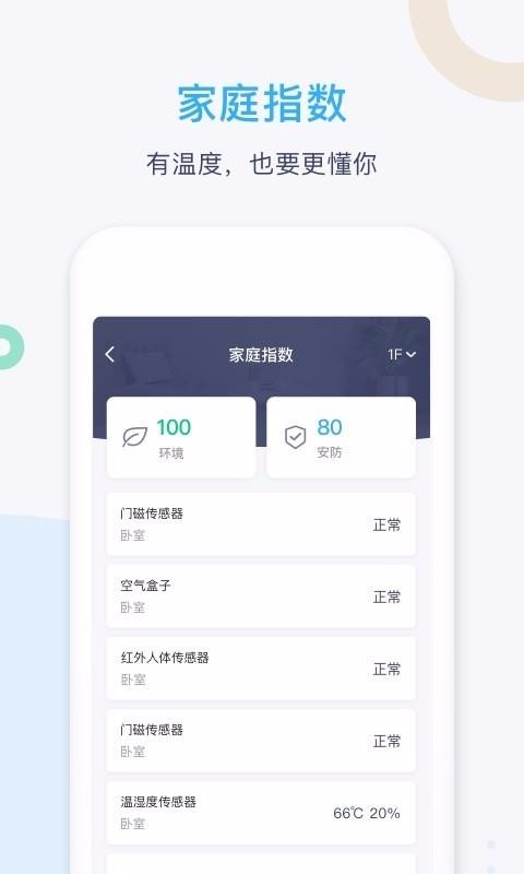5、点击进入家庭指数,可以查看每个智能设备是否运行正常