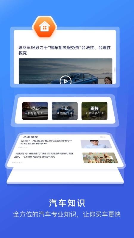 惠商车服app是一款专业二手车交易软件,能够为用户提供海量的二手车资源,各种车型、品牌应有尽有,让您可以在这里快速的找到你喜欢的汽车进行购买,可以更好的满足用户对汽车的需求;同时这里还为用户提供了大量的二手车业务,涵盖了二手车金融、二手车买卖、二手车保险、二手车估价等综合服务,你可以选择你需要的服务在这里快速的一键办理,能够更好的方便每一位用户;还为用户提供了违章查询功能,用户可以通过手机快速的进行违章查询,让您可以实时对你的爱车的违章情况进行了解,你也快来试试吧。