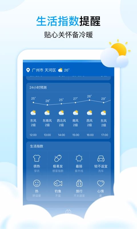 天气球球app是一款非常贴心的天气预报软件;这款软件可以随时让用户了解最新的天气信息,当天24小时的精准预测以及未来15天内天气趋势预测,掌握出行的状态,如果天气出现狂风暴雨的情况,就会有智能语音的天气警报及时提醒用户做好预防工作;软件还会实时监控空气质量关爱用户的健康,以及具有生活指数可以用来提醒用户穿衣带伞,非常的贴心;此外,还能记录步数、运动里程、行走时间,非常智能;赶紧点击下载这款天气球球app,一款超好用超贴心的天气预报软件。
