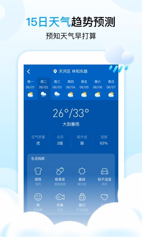 6、未来15天内的天气变化情况可以达到分钟级别,非常精确,用户可以安心出行;