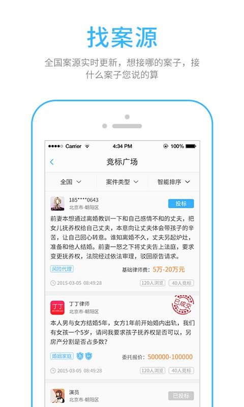 1、平台里有全国的案源可以使用,让用户能够快速的进行选择;