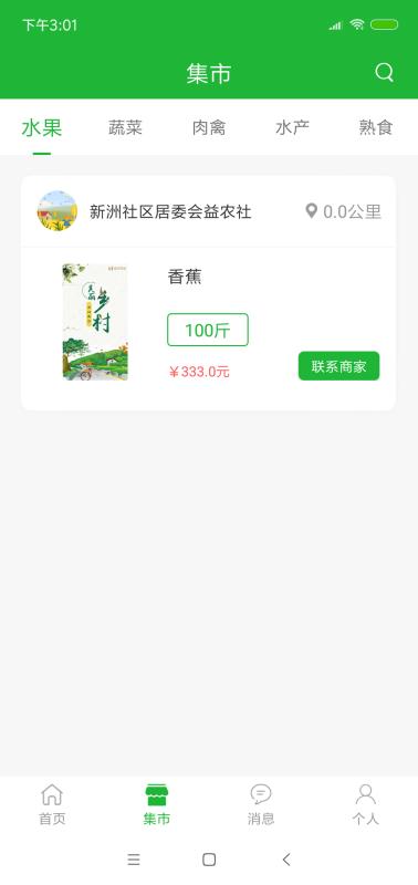 3、点击集市,选择商品的分类,查看商品的价格、图文介绍等情况后,直接联系商家进行购买商品;