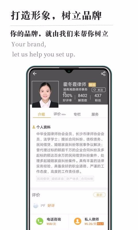 律霸律师端app是专为律师打造的交流服务平台,同时也是顾客咨询平台;软件中聚集全国上万名优质律师,帮助市民解决生活中所遇到的各种法律问题,让市民多一份安心,多一份保障;目前,服务的范围包含北京、上海、宁波、成都等全国各线城市,未来还会开放更多城市的法律服务,市民可以快速咨询遇到的法律问题,寻找优质的律师帮您打官司,搜集重要的资料信息,整合起来,轻松打赢官司;还能使用软件自动审核文书,查看文书中有误的地方加以修改,帮助用户写出更优质的文书,打好每一场官司,尽最大力帮助市民保障个人权益,不受任何侵害。