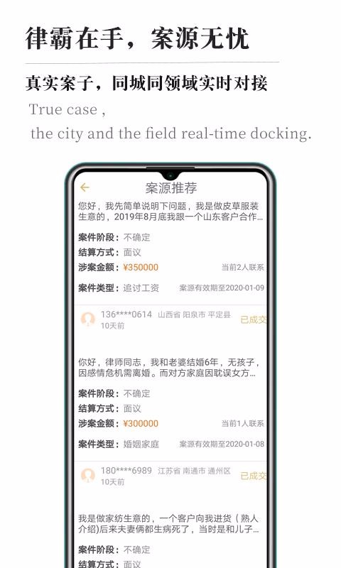6、同城同领域实时对接,真实案例实时显示,让用户了解法律知识