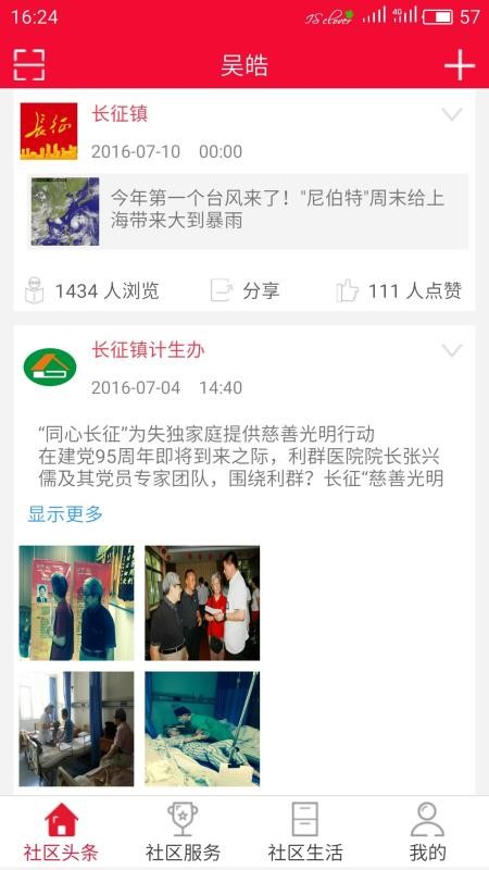 1、在社区头条中,用户可以看到长征镇的各种实时资讯和信息更新;