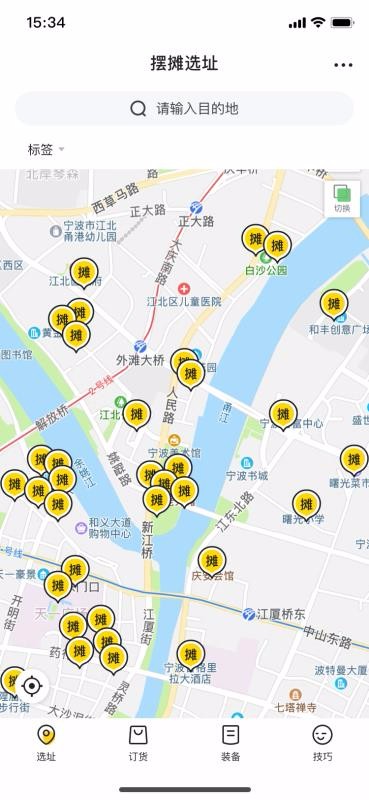 3. 练摊宝APP可为各个摆摊区域进行定点标记,例如商圈周边、校院园区、地铁口旁、小区附近等等,供摆摊用户根据自身需求挑选抉择;