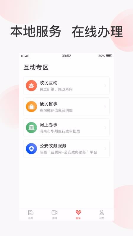 1、软件的本地服务众多,包括本地行政服务,包括政民互动、便民省事、网上办事、公安政务服务等;