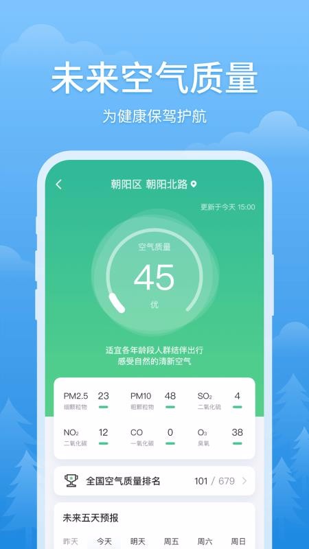 空气质量实时查询,PM2.5一目了然,从容面对雾霾污染。