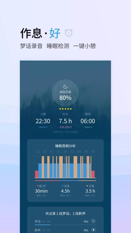 6、这款软件具有很专业和全面的睡眠服务,可以帮助用户提高睡眠的质量;