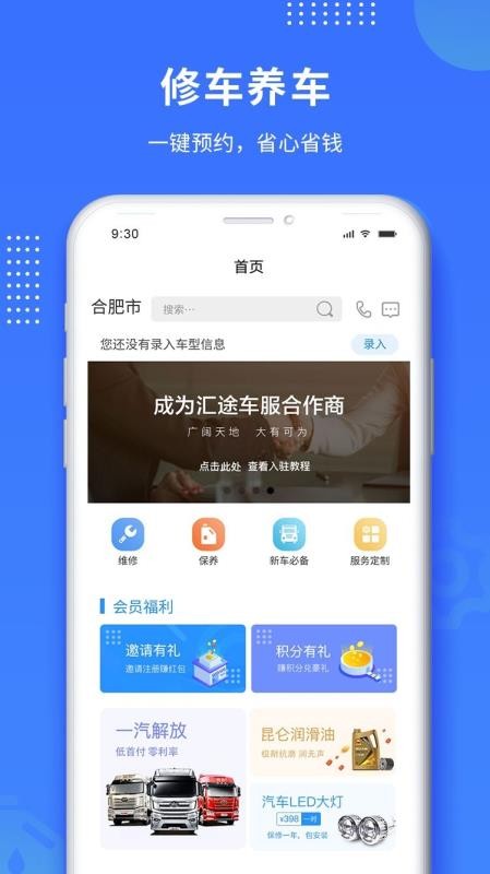 汇途车服是一款服务汽车的软件,能够提供专业的汽车维修和保养服务,让用户在平台里能够快速的使用,更好的保养自己的汽车。平台里的服务功能非常的多,用户在使用的时候可以根据自己情况快速的进行选择,你可以在线进行预约,让专业的维修人员上门进行服务,帮助你更好的维修车辆,提供优质的服务。有专业的技术,让用户在使用的时候更加的安全,时刻保障着用户的汽车安全,会根据用户的车辆情况快速的进行匹配,为用户推荐优质的保养方案,让你更好的进行使用,给用户节省了更多的时间,确保用户能够得到贴心的服务。
