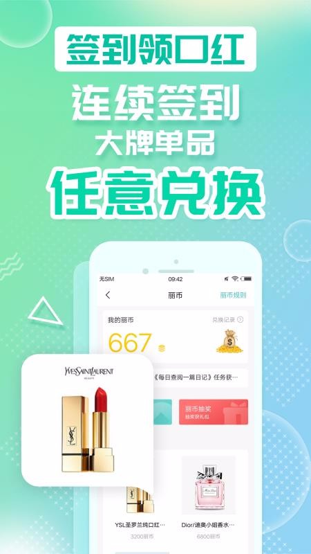 3、每天连续签到可以获取一定数量的丽币,丽币可以用来任意兑换大牌单品;