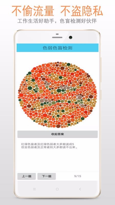 - 色盲检测无后台启动,不偷流量,不盗隐私,不耗内存;