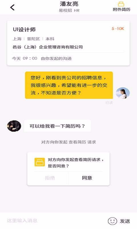 4、深入交流:可以直接与HR进行一对一线上交流,双方都同意后直接投递查看简历;
