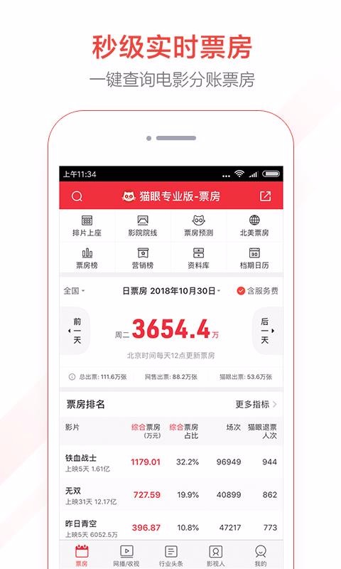 2、最具准确性的票房预测功能以及预售分析可供查看;