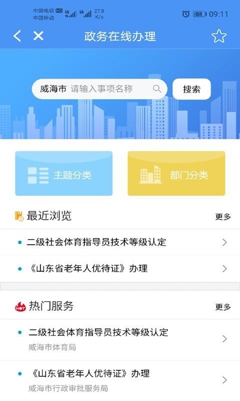威政通app是专为威海市当地用户提供的一款政务服务软件,用户可以通过本款软件在线办理多项政务,让你足不出户就可以通过手机快速的进行线上办理,并且用户还可以在这里查看自己办理的业务实时进度,让你可以更好的进行了解;同时还为当地的用户提供大量的新闻资讯,让你可以在这里快速的进行查看,从而更好的了解到当地最新的各种信息,你可以随时随地的阅读到有关地方的新闻资讯内容,更可以在线轻松办理各种本地服务,还能够在这里在线查询酒店,旅行社,吃玩住都可以轻松享受,更好的方便每一位用户。