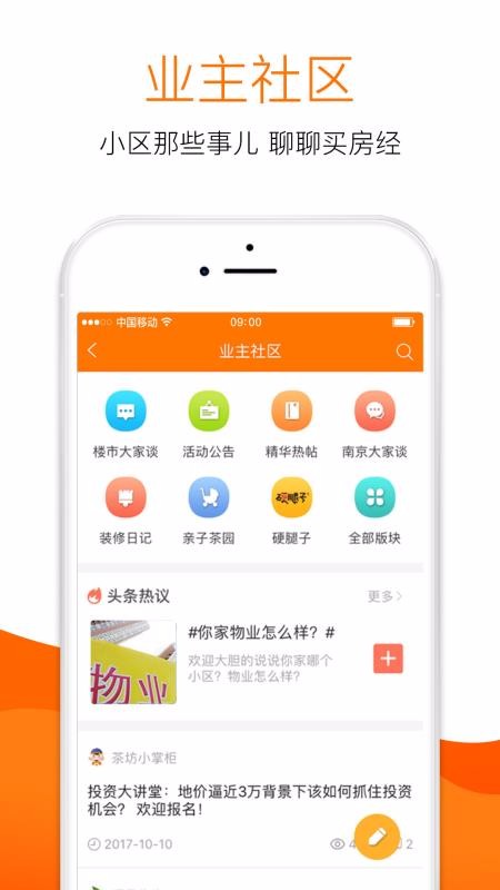 365淘房是一款为买房、租房设计的一个辅助服务平台,为用户找到了海量的房源资讯内容,还设计了各种方便快捷的购房辅助工具;在平台打造了一个业主社区,用户们可以在这里查看关于物业、投资等不同方面的话题资讯,随时都能浏览资讯的详情,还能选择参与到该话题讨论中;这里设置了许多的社区服务专栏,有楼市大家谈、活动公告、精华热帖以及南京大家谈等不同的论坛专区,可以在不同的论坛专区中讨论不同的话题;许多在售的房源都会展示在房源列表中,第一眼就能观看到该房源的图片,它的价格以及位置区域。
