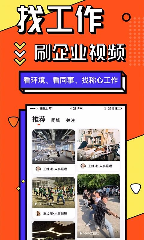1、通过看岗位介绍视频,就能快速挑选找到适合自己的工作,非常直观、方便快速;