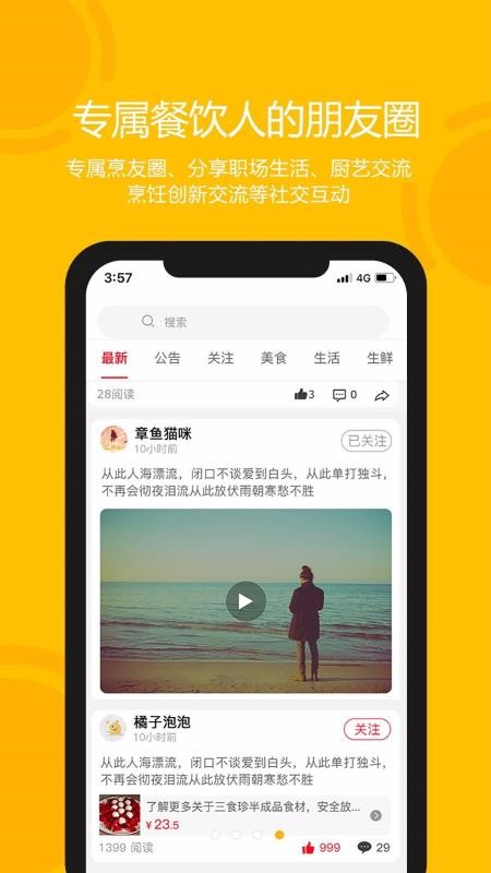 三食珍是一款是中国预制菜采购批发的软件,此应用拥有大量的高端食材,可以在线上帮助餐厅采购到需要的食材进行美食的制作;在这里提供有系统定位功能,用户可以实时在定位地区看到大量的食材商品,系统还会将精选的上进行推荐,方便用户在线进行选购;通过搜索功能,还能在平台上精准快速的找到对应的食材进行购买;而且一键就能加入到购物车中,快速将购物车中的食材商品进行结算,非常的方便;还能在平台上发布朋友圈,分享自己的职场生活,让更多的人看到,结交更多的好友,赶快下载试试吧!