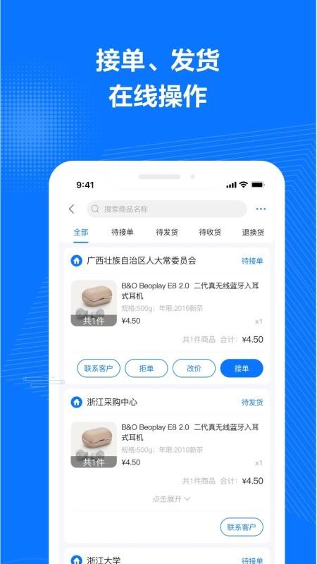 2、支持手机操作订单、接单、发货,订单流程一站式解决;