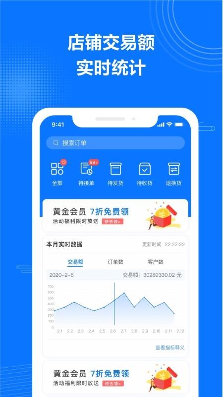 3、自己店铺的交易额实时统计,安排的清清楚楚,明明白白 让生意变得便捷、轻松,是我们共同努力的方向;